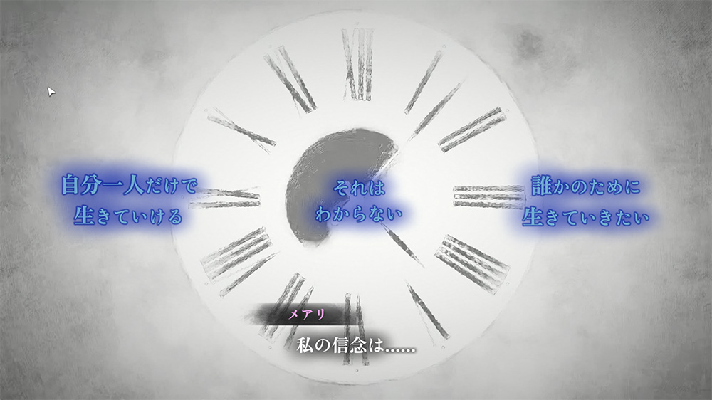 物語を進めると、電話をしている相手だけではなくメアリちゃんに対する問いかけも要所に現れます。