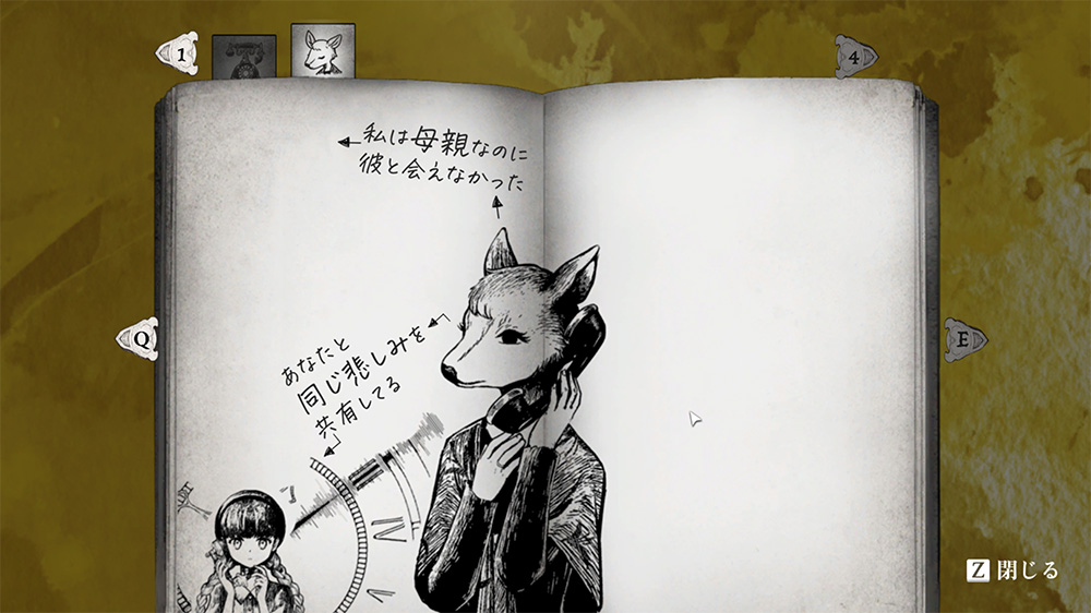会話の中で答える選択肢は豊富ですが、メアリの手描き手帳で情報や選ぶことはわかりやすくて迷いません。