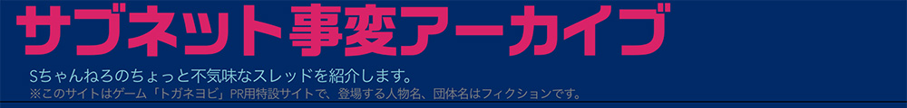 「サブネット事変アーカイブ-Sちゃんねる」は、トガネヨビのPRのために作られた特設サイトです。