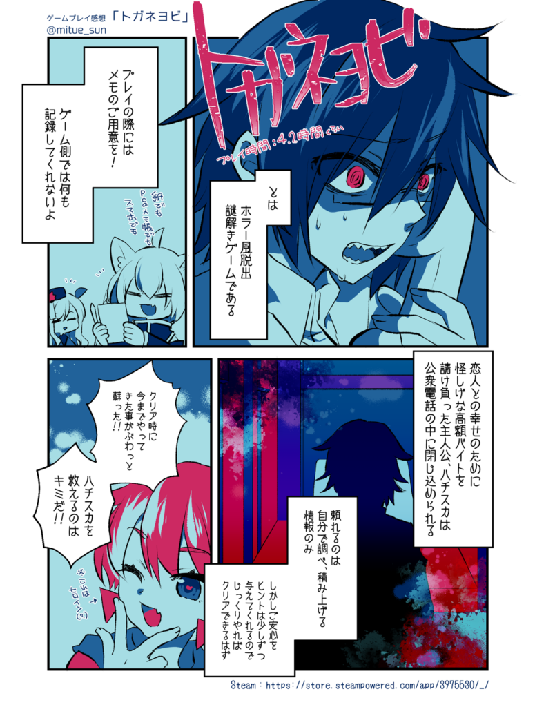 ■われた公衆電話からの脱出を試みる、じゃむさんっぽいどの新作ホラー×脱出ゲーム トガネヨビ